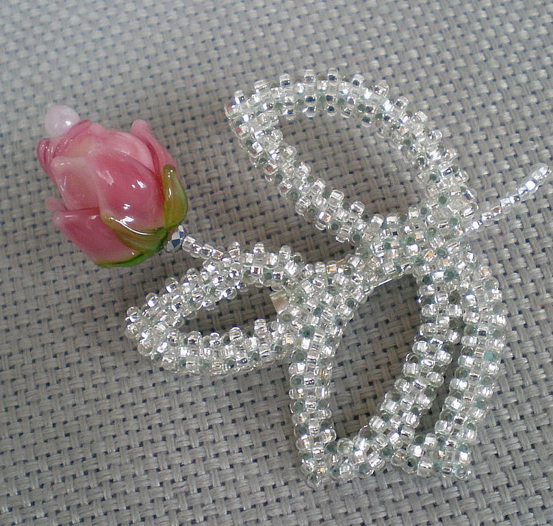 роза, брошь, брошь ручной работы, брошь из бисера, стекло лэмпворк