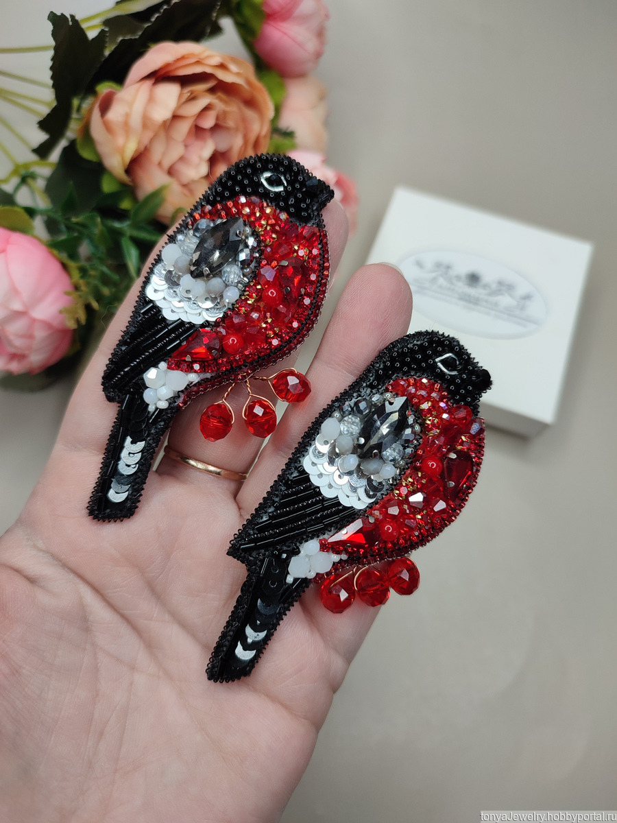подарок на новый год, брошь ручной работы, подарок коллеге, брошка, брошь в подарок, брошь снегирь, брошьптица
