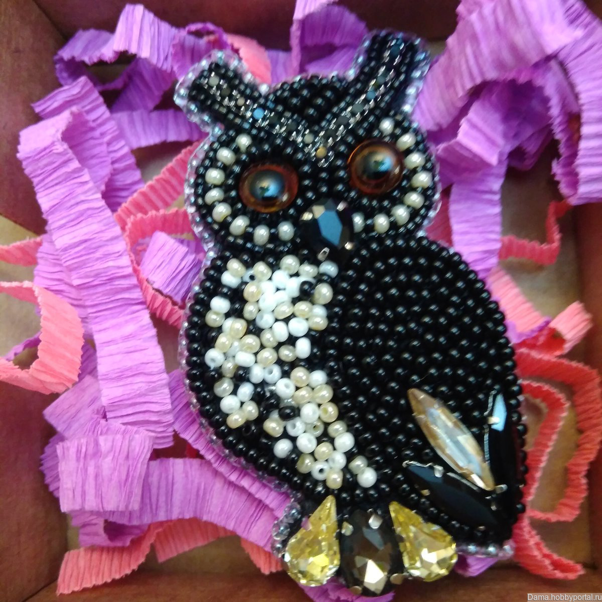 Брошь выполнена из бисера, бусин, страз, жёсткой канители, фетра и иск. Кожи. Размер 7*5см.