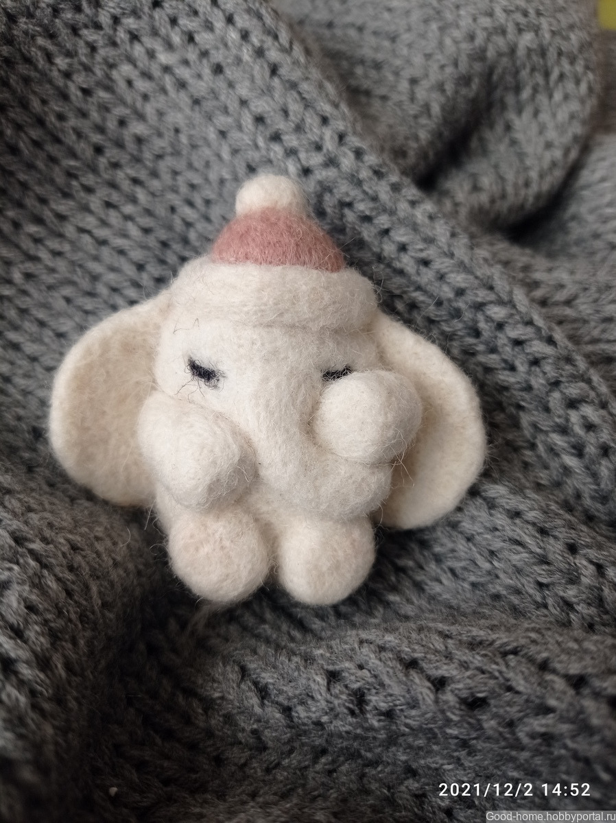Уникальная авторская брошь " Спящий слоненок " в технике фелтинг. , в единственном экземпляре . Материал : шерсть. Кардочес.