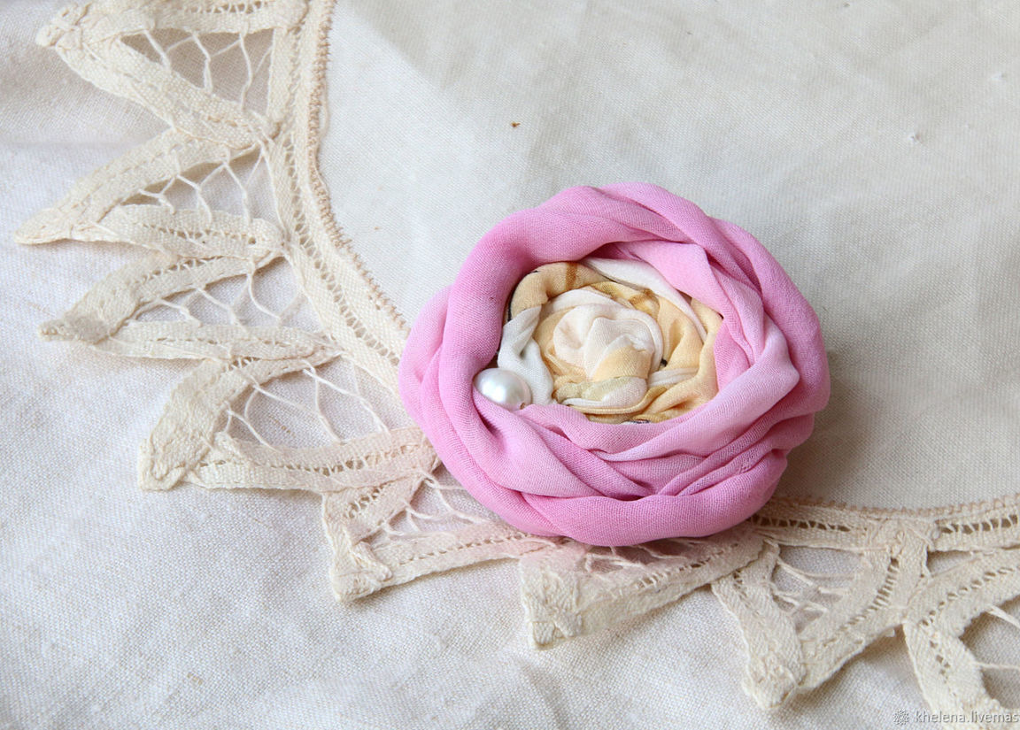 розовый, бежевый, 8 марта, подарок, весенний, шебби стиль, брошь-булавка, женственный, текстильная брошь, яблоневый цвет, брошь из шелка