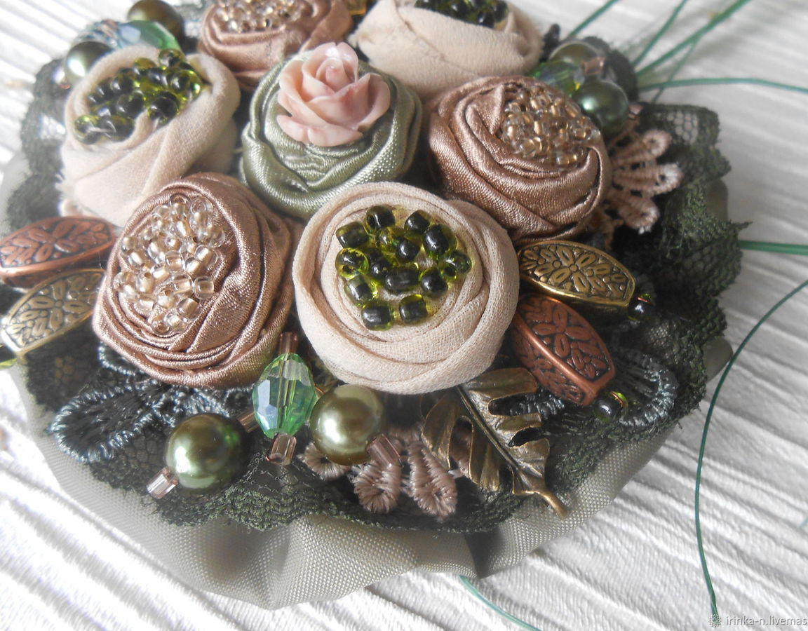 украшение с цветами, украшение ручной работы, брошь ручной работы, текстильное украшение, текстильная брошь, брошь текстильная, брошь текстильная бохо