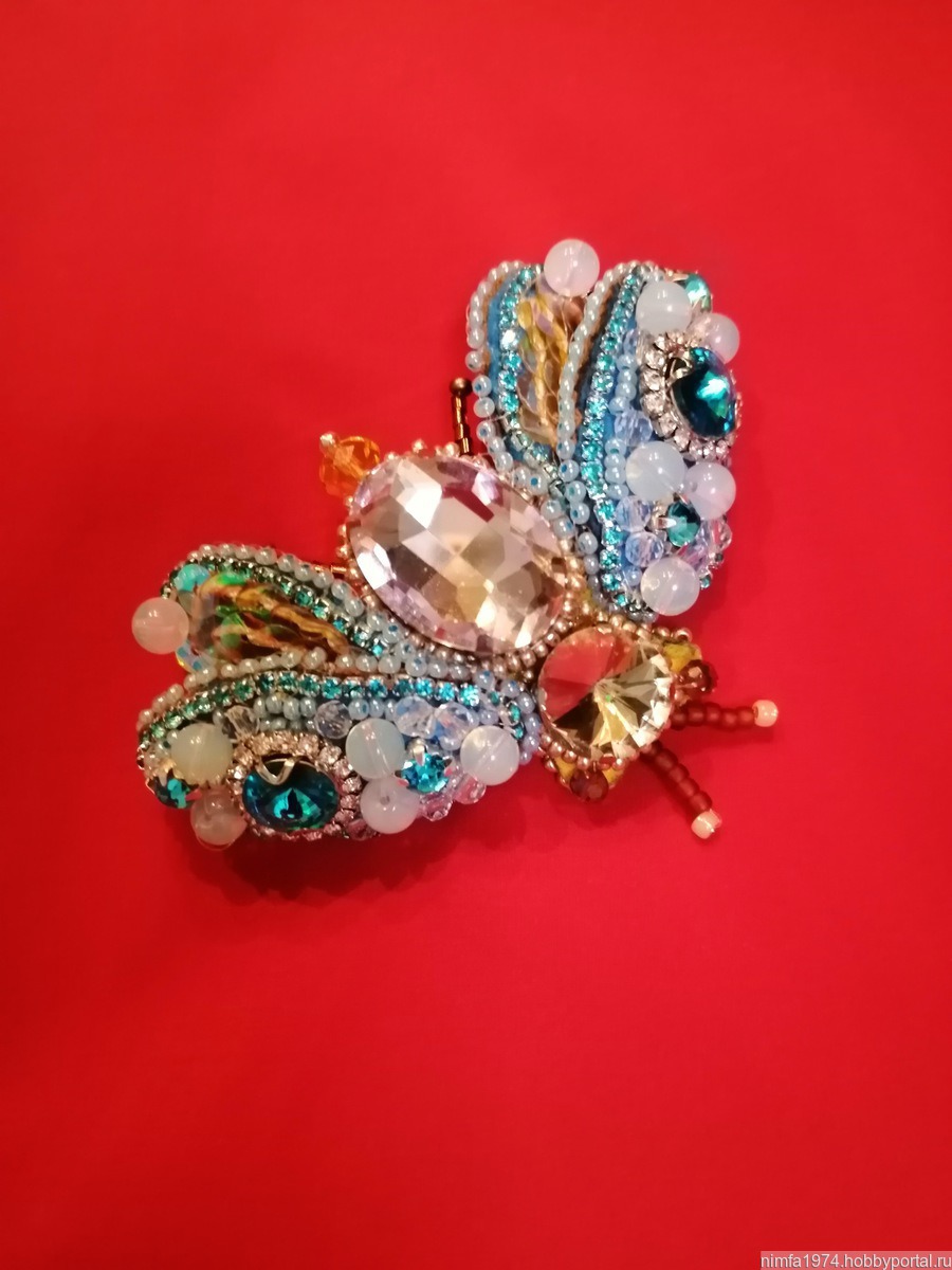 Вот такой получился замечательный мотылек ручной работы. Все крылышки и туловище вышивалось отдельно потом все сшивалось. Расшит натуральным лунным камнем (адуляр), хрустальными кристаллами, стразовой цепочкой, стразами в цапах стекло,чешскими бусинами, пайетками, бисером чешским, японским бисером тохо, изнанка экокожа высокого качества. Небольших размеров брошь подойдет под любой образ. Очень красиво переливается. Станет эксклюзивным украшением для Вас или отличным подарком. Авторская работа, точное повторение невозможно. Высылается в подарочном пакете из органзы.