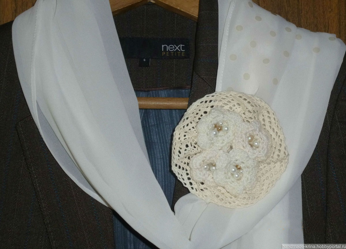 кружево, украшения ручной работы, вязание крючком, брошь вязаная