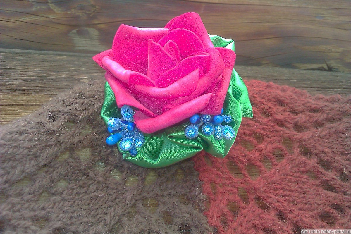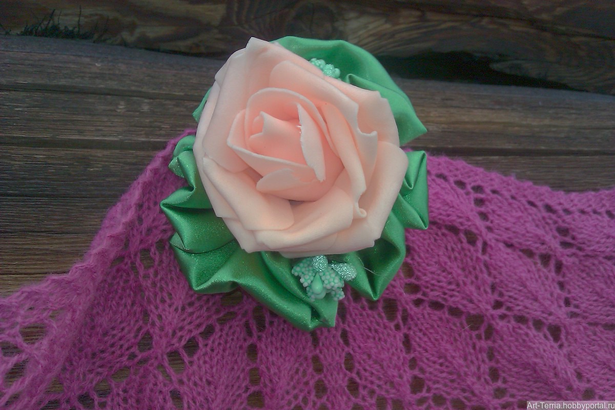 Брошь-заколка с цветком из фоамирана и основой из атласа великолепно дополнит вашу шаль или головной убор, а так же жакет или курточку. Два вида застёжек позволяют использовать ее на разных фактурах, внося разнообразие и шарм в ваш повседневный образ
