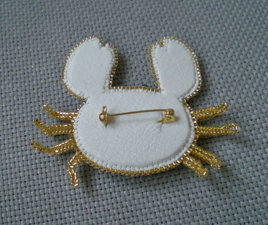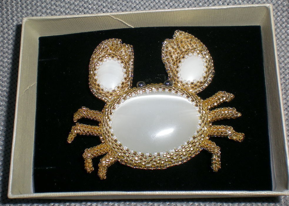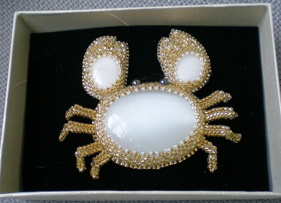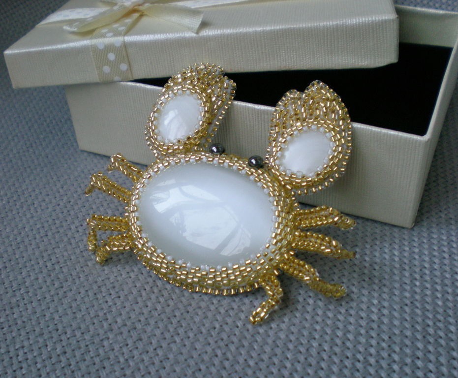 брошь, брошь ручной работы, краб, морская тематика, брошь с камнями, брошь из бисера