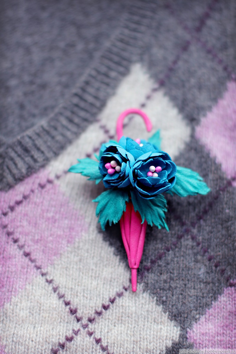 Брошь-зонтик "Маленькое Очарование" Ручная работа. Брошь выполнена из натуральной итальянской кожи. Крепление - крошечная булавка. Размер 8 х 5 см. Брошь прекрасное дополнение к вашему образу, а также подарок для родных и близких .