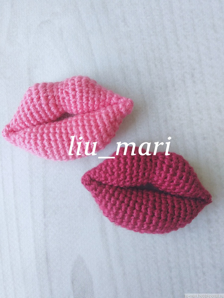 Вязаная брошь "Поцелуй"