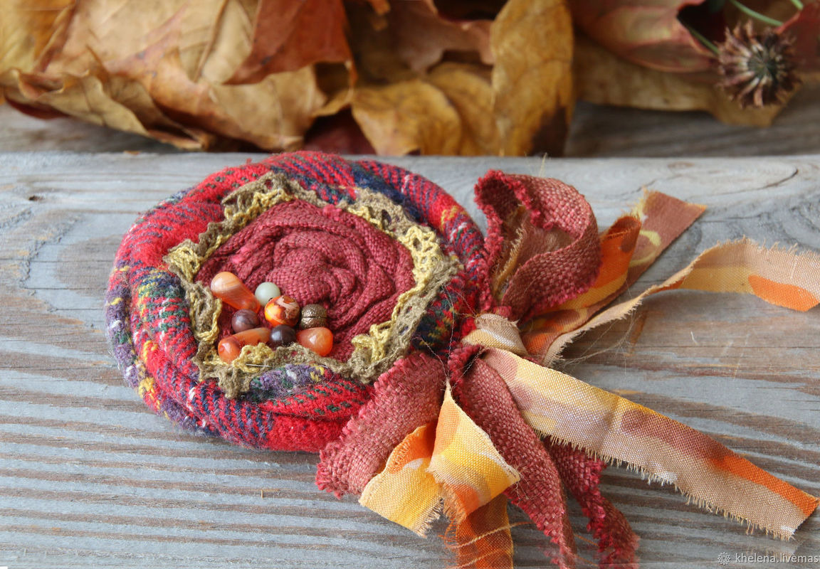 зелёный, бордовый, бохо-стиль, натуральные материалы, рыжий, шотландка, кантри, терракотовый, текстильная брошь, ягодный цвет, осенние оттенки
