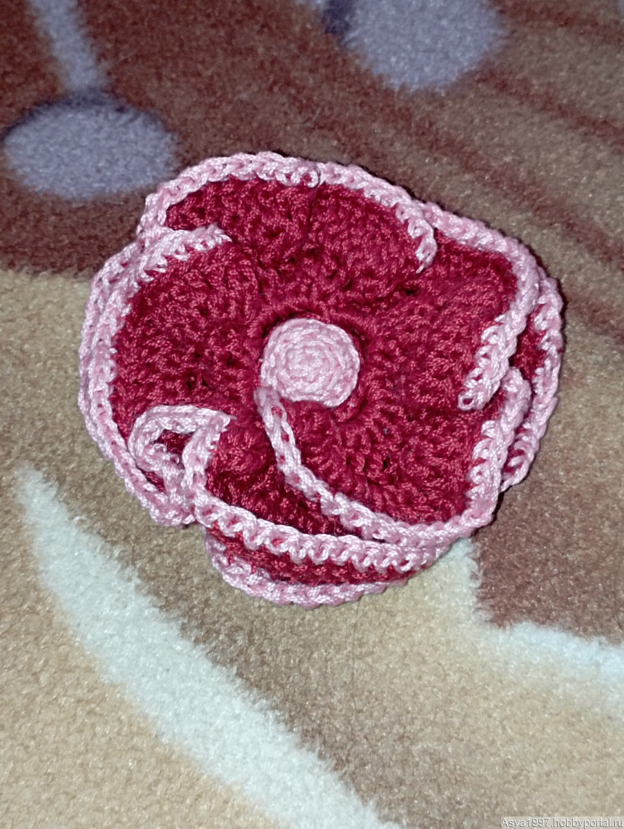 Вязанный цветок. Может быть заколкой, брошкой для шарфа.
