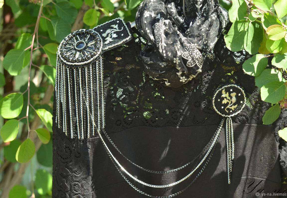 Вы идете на гламурную вечеринку? Вам необходим необычный аксессуар, который выделит вас из общей массы? Тогда обратите внимание на этот черно-серебристый эполет с аксельбантом!)