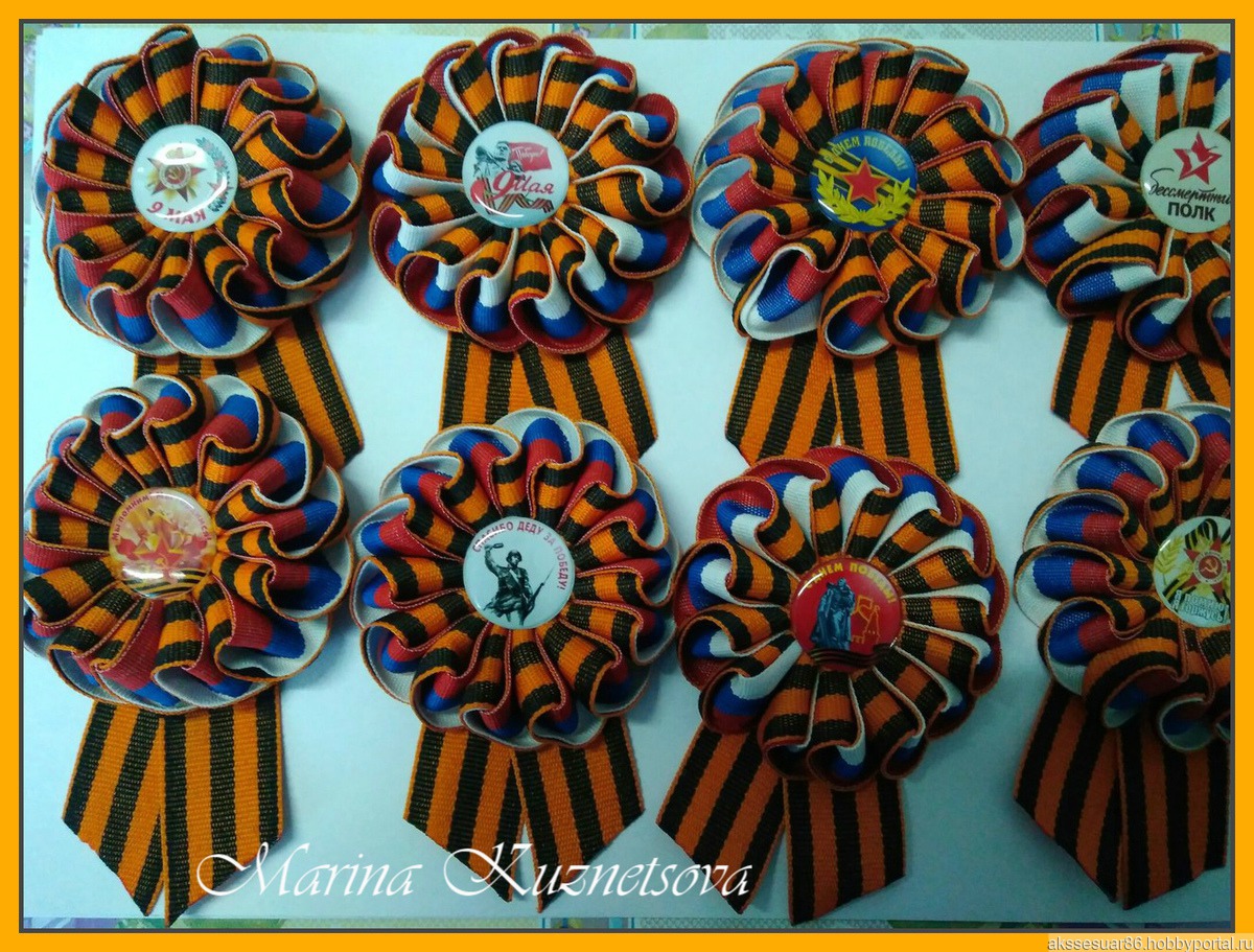оранжевый, украшения ручной работы, брошь ручной работы, день победы, георгиевская лента, георгиевская брошь