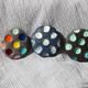 маренго, Броши из полимерной, брошки в горошек, броши с эмалью, набор брошей ретро, сет брошей купить, шоколадно-бирюзовая брошь, серая в цветной горох, маленькие круглые брошки, бежево-синяя брошь