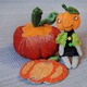 Тыквенный человечек 9,5 см (без учета стебелька). Тыква - брошка 7,2см в ширину и 6 см в высоту. Игольница 9 см по дну и 5 см в высоту (без учета стебелька).
