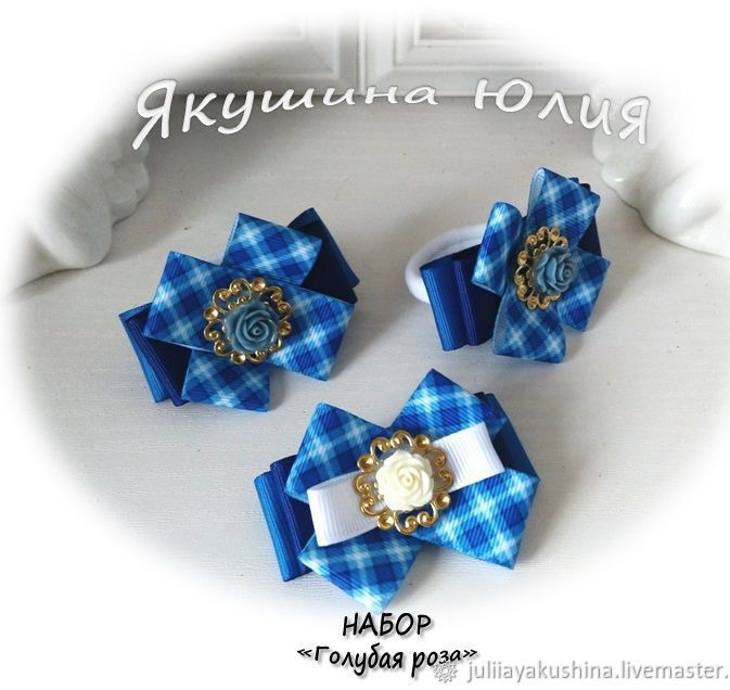 Винтажный набор состоит из трёх изделий: два бантика на резинке для волос и брошка на булавке. Набор украсит школьную форму вашей маленькой модницы. Работа выполнена достаточно прочно, бантик не оторвётся спустя несколько нескучных перемен, а если вдруг забудете перед стиркой снять с платья брошку, то она прекрасно переживёт стирку в стиральной машине.