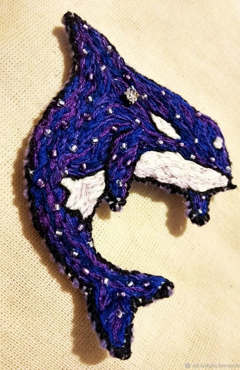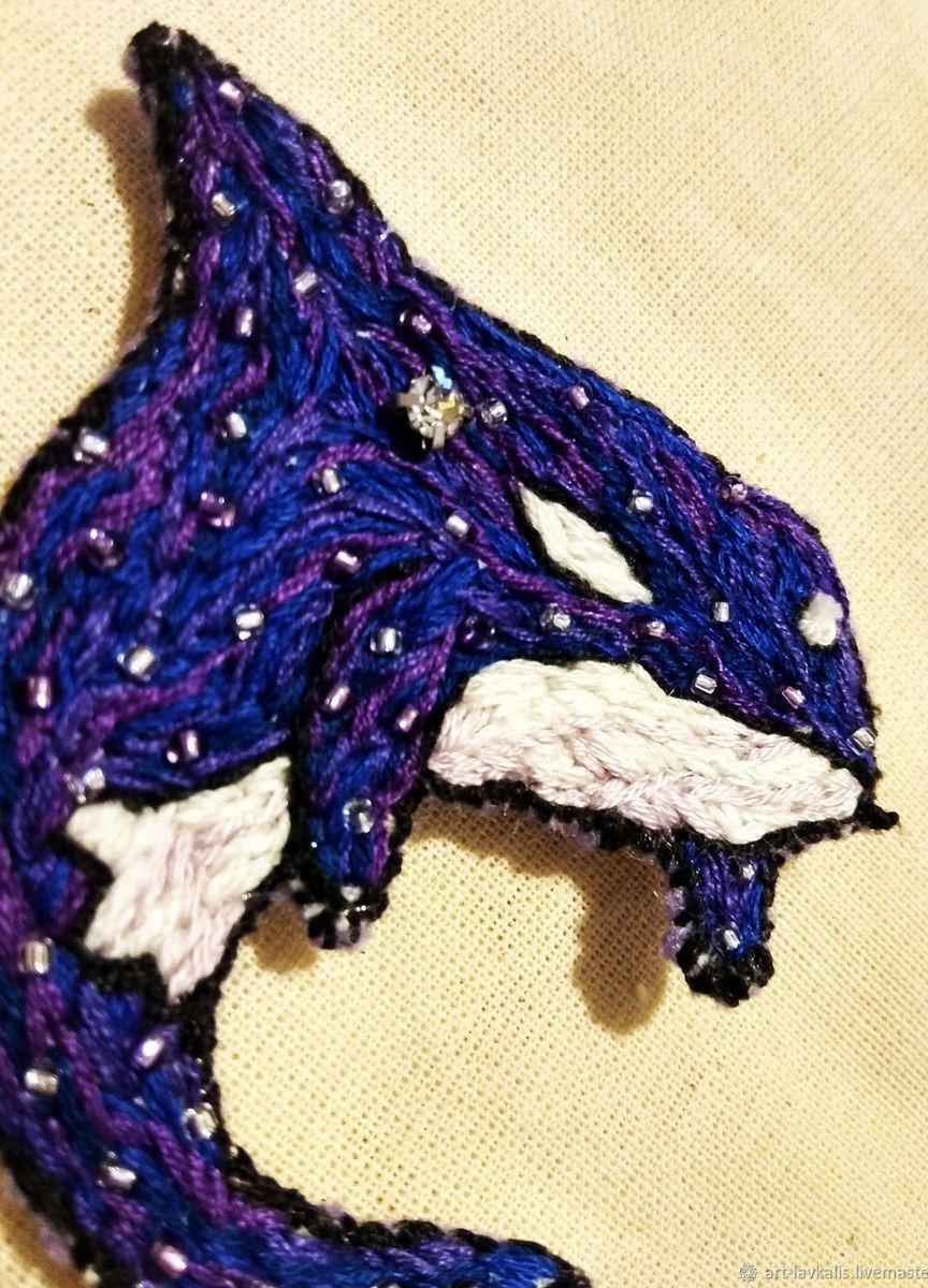 море, подарок на новый год, подарок на день рождения, ручная работа, подарок девушке, кит, авторская брошь, космос, касатка