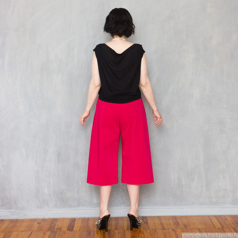 Розовые укороченные брюки кюлоты в добавят цвета в ваш летний гардероб.