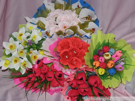 лента атласная, бусинки, конфеты, гофрированная бумага, органза