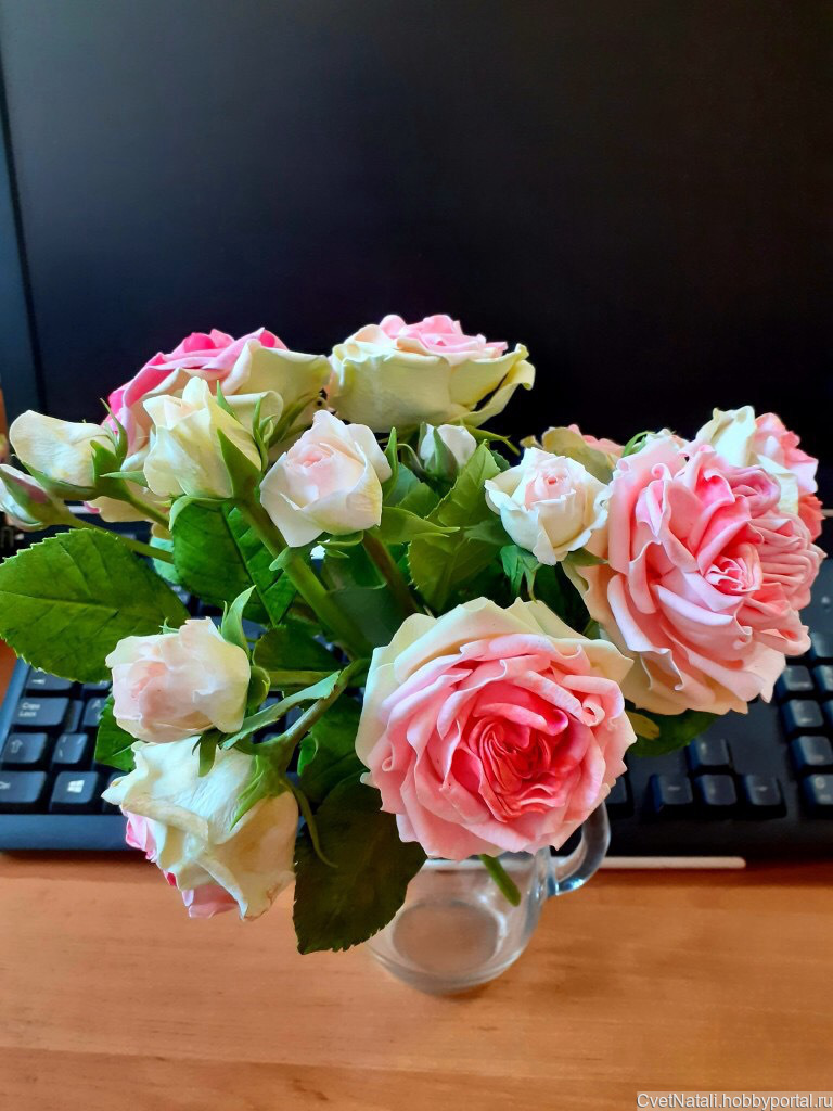 Букет роз Мими эден. Интерьерная композит выполнены из полимерной глины (Deco, холодный фарфор, зефирная глина). Полностью ручная работа. Прекрасно смотрится в любой комнате, в офисе, на работе. Украсит интерьер помещения. Внесёт нотку летнего тепла.
