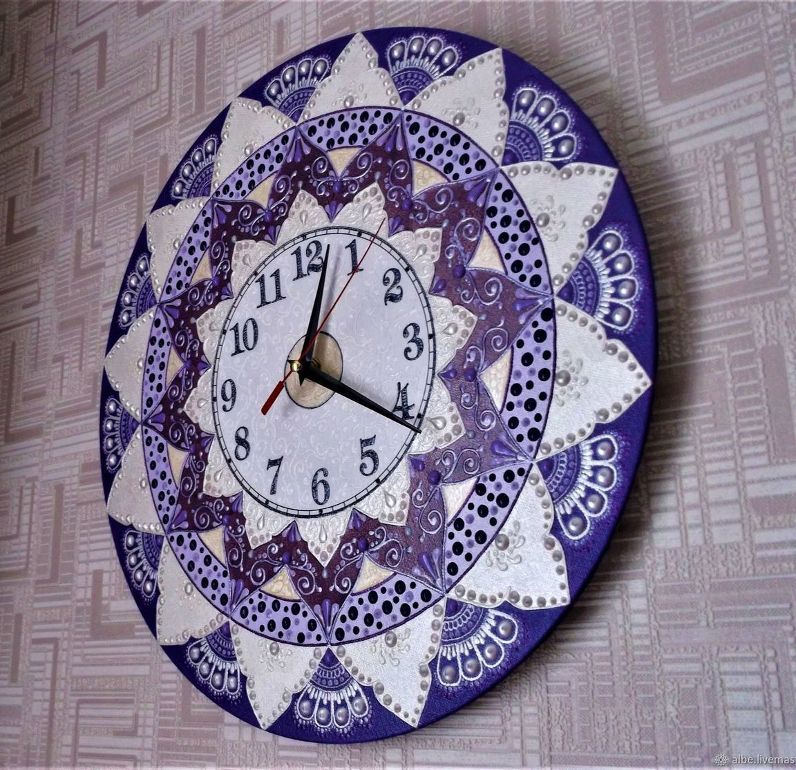 оригинальный подарок, подарок женщине, часы настенные, подарок на кухню, фиолетовый сиреневый, ирина альба, часы точечная роспись, точечная роспись часов, часы на стену, часы с росписью, подарок в комнату, часы в единственном экземпляре, подарок для спальни, часы для комнаты, красивые часы на стену, жемчужный серебро, подарок ддля семьи