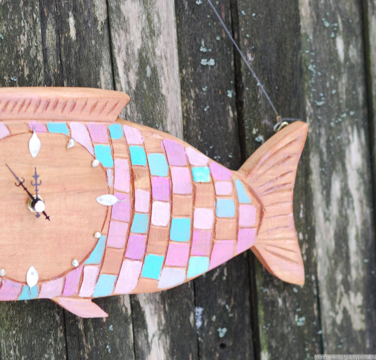 Часы сделаны из соснового щита.Рисунок вырезан гравером. Декор акриловыми красками, часы покрыты лаком.