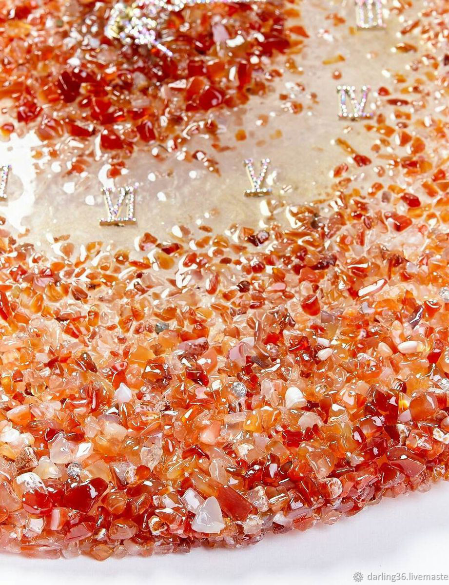 интерьер, эксклюзив, стиль, мода, подарок на любой случай, натуральные камни, часы, дизайн интерьера, эксклюзивный подарок, сердолик, настенные часы, горный хрусталь, дизайнерская работа, элемент декора, дизайнерское украшение