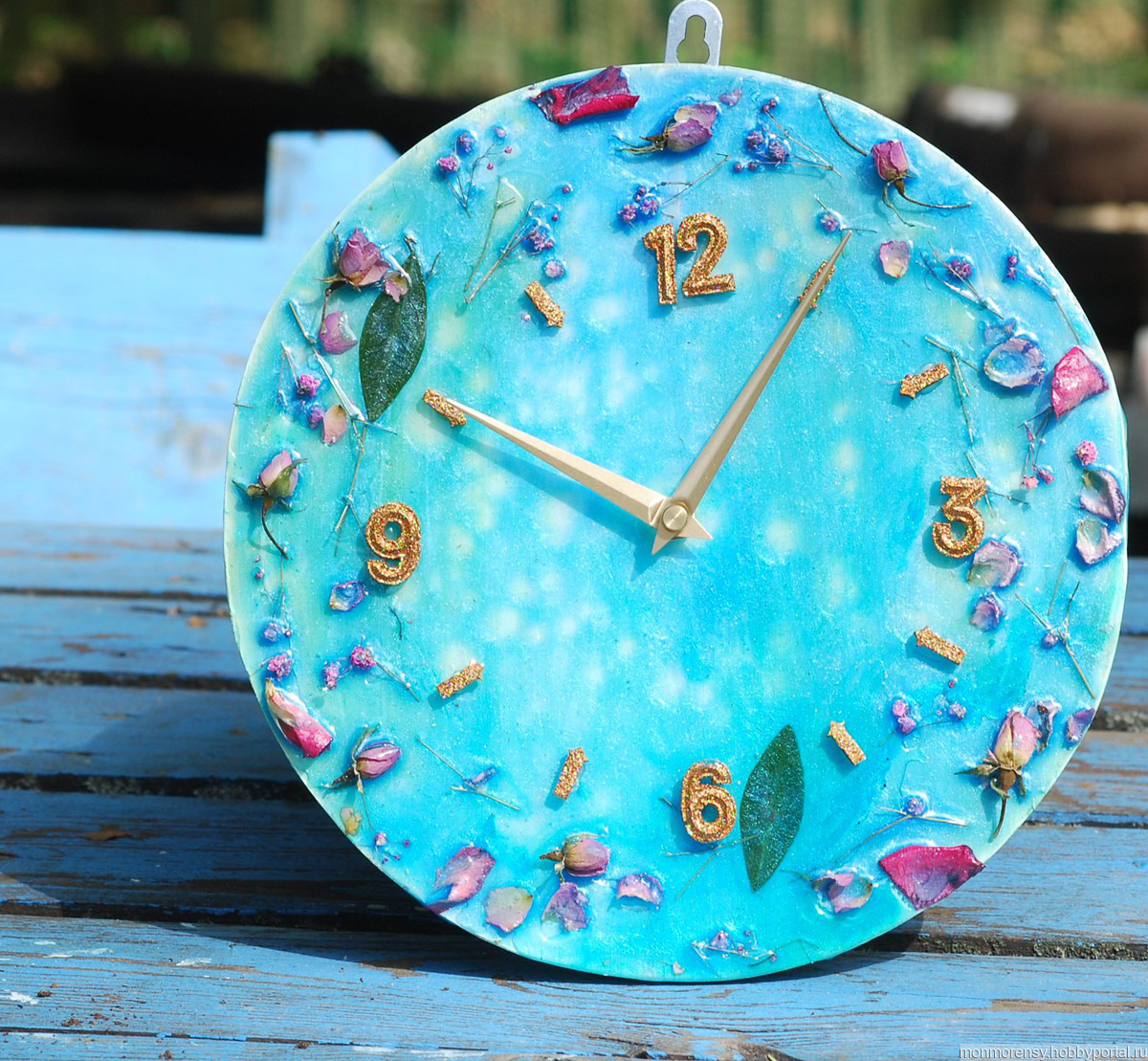 Настоящие розы залиты эпоксидной смолой, диаметр часов 27 см. Интересное и яркое дополнение детской, кухни, дачи или спальни. Прекрасный подарок, оформлен в коробку