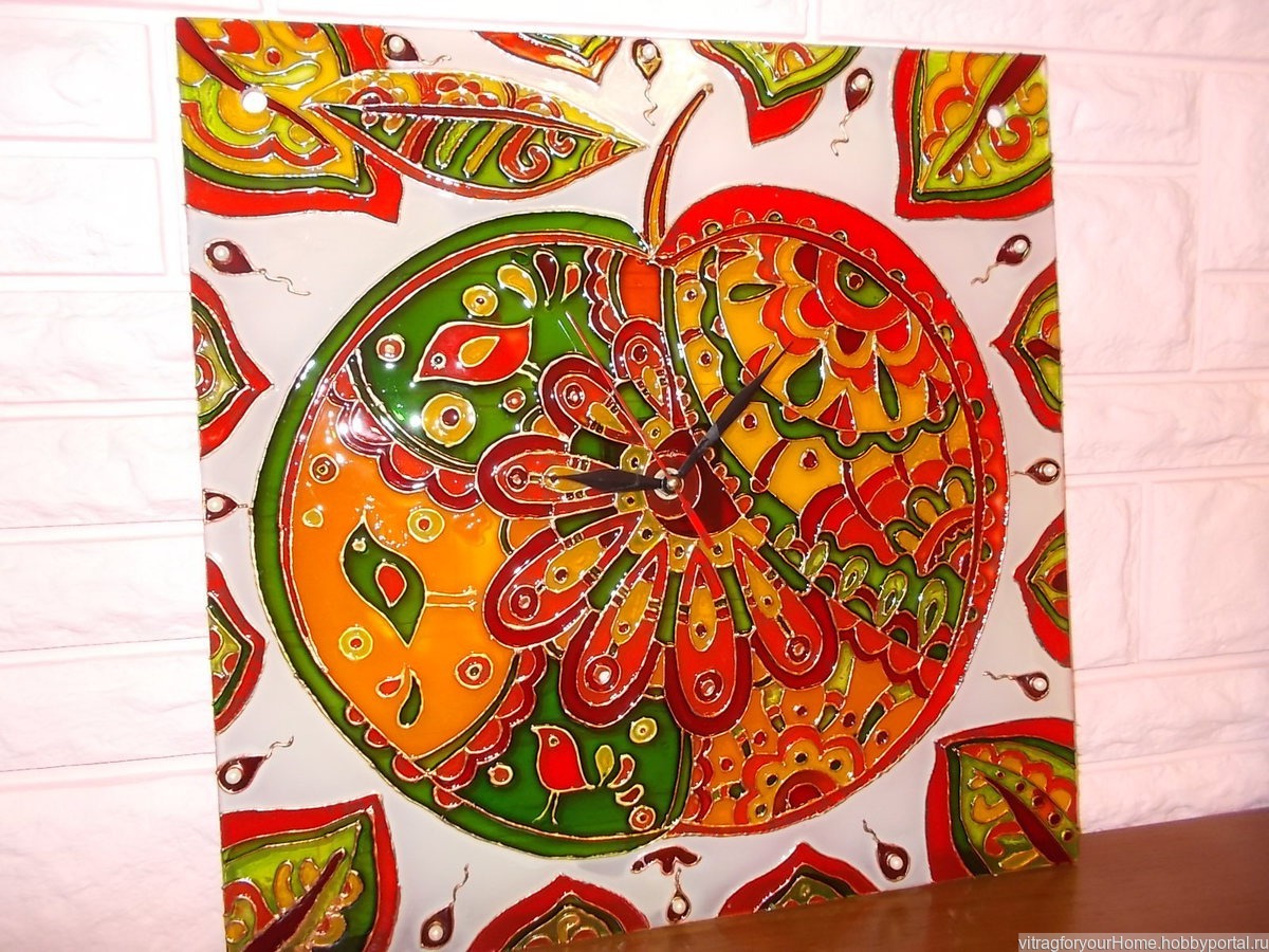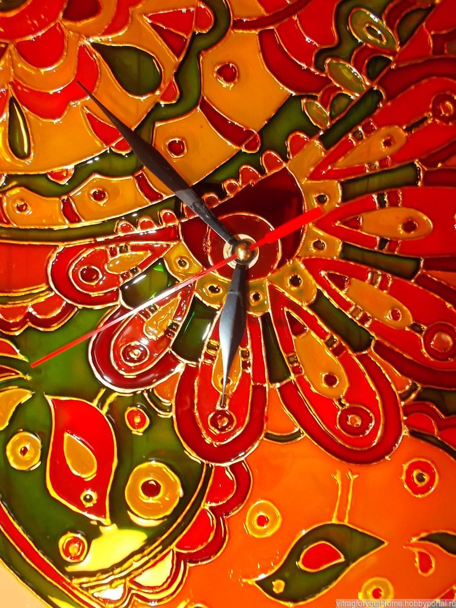 для дома и интерьера, настенные часы, витражная роспись, роспись по стеклу, красивые часы