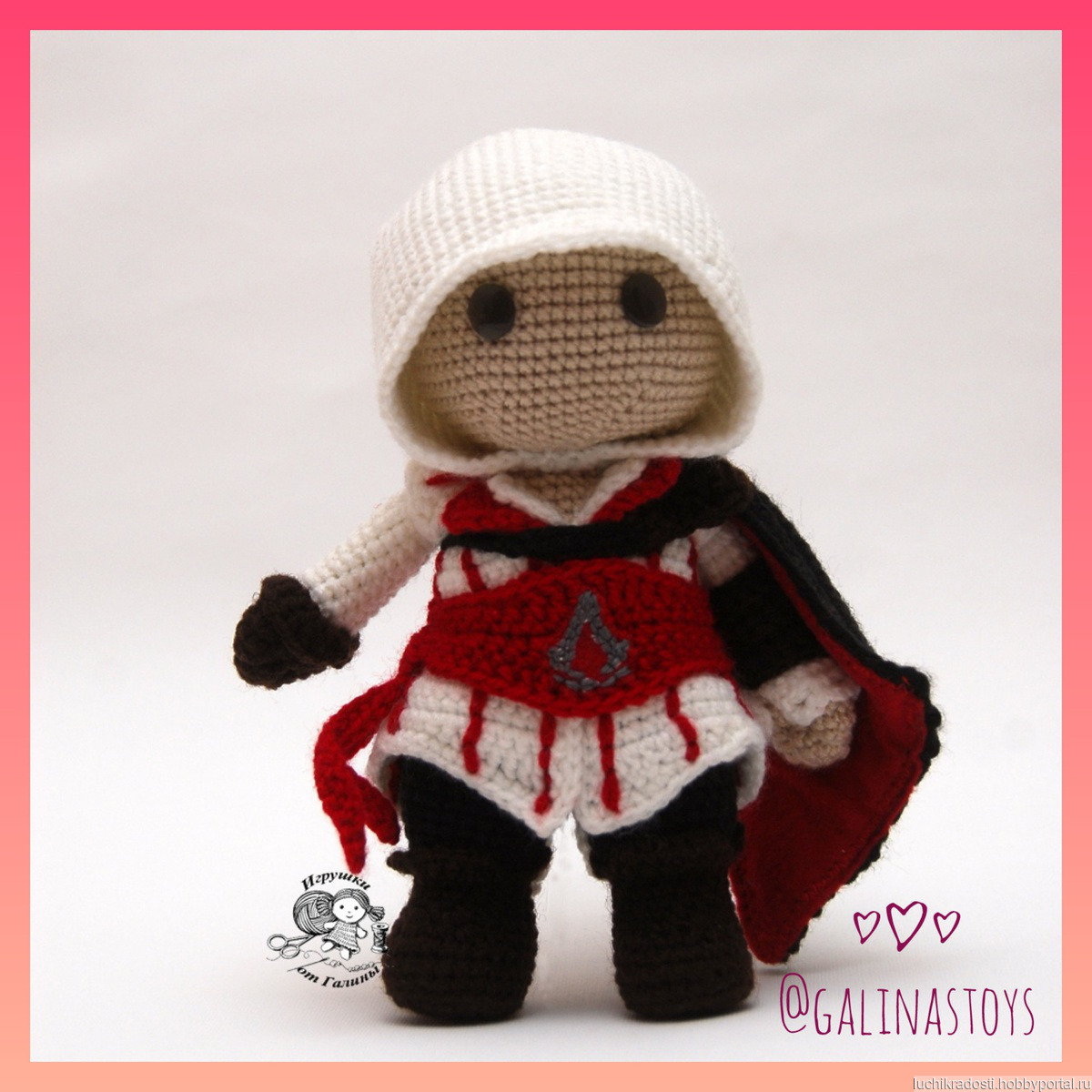 вязаная игрушка, белый, ручная работа, сувенир, мягкая игрушка, бордовый, подарок, коричневый, телесный, вязаная игрушка крючком, компьютерная игра, ассасин, кукла крючком, кукла в подарок, готовая работа, куклы и игрушки, вязаный человечек, персонаж игры, эцио аудиторе, ассасин эцио, персонаж из игры
