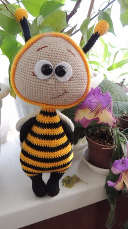 Бонечка в костюме пчелки - очень позитивная игрушка. Для ребенка может стать самой любимой куклой. Ростиком она 21 см без усиков.В иргушку вставлен проволочный каркас.