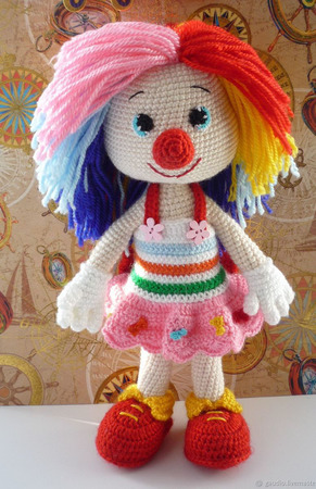 вязаная игрушка, интерьерная игрушка, игрушка ручной работы, интерьерная кукла, кукла ручной работы, кукла крючком, кукла интерьерная, амигуруми, клоун, клоунесса, клоун крючком, клоун в подарок