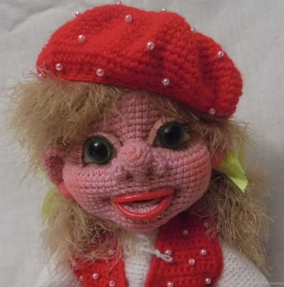 Игрушка связана крючком, работа полностью ручная.Одежда вся снимается. Волосы из травки.