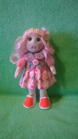 очень приятная куколка. 27 см. стоит. хочет порадовать вас.