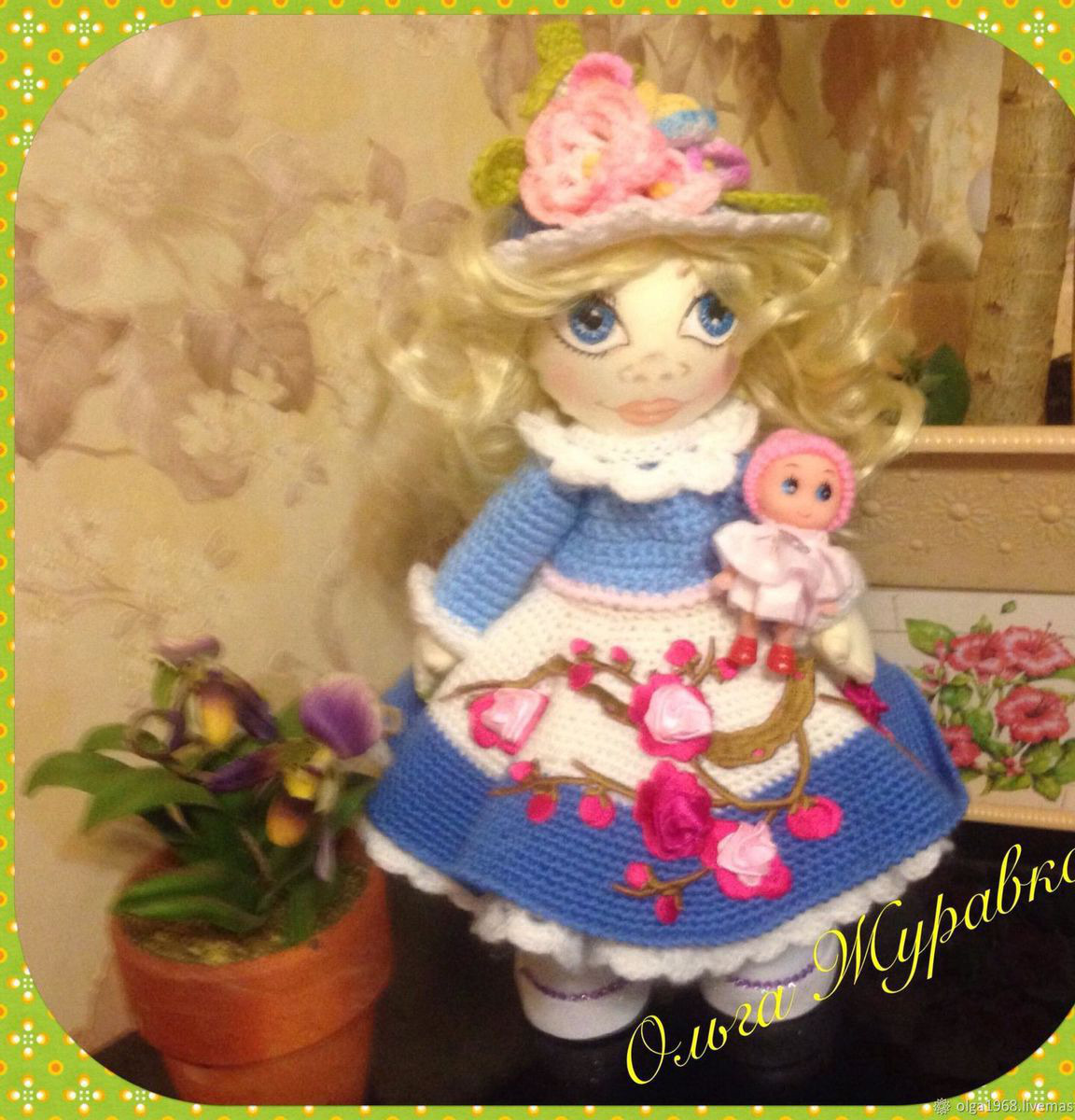 кукла ручной работы.Самостоятельно стоит. Ручки и ножки подвижные. одежда не снимается. Отличный подарок.