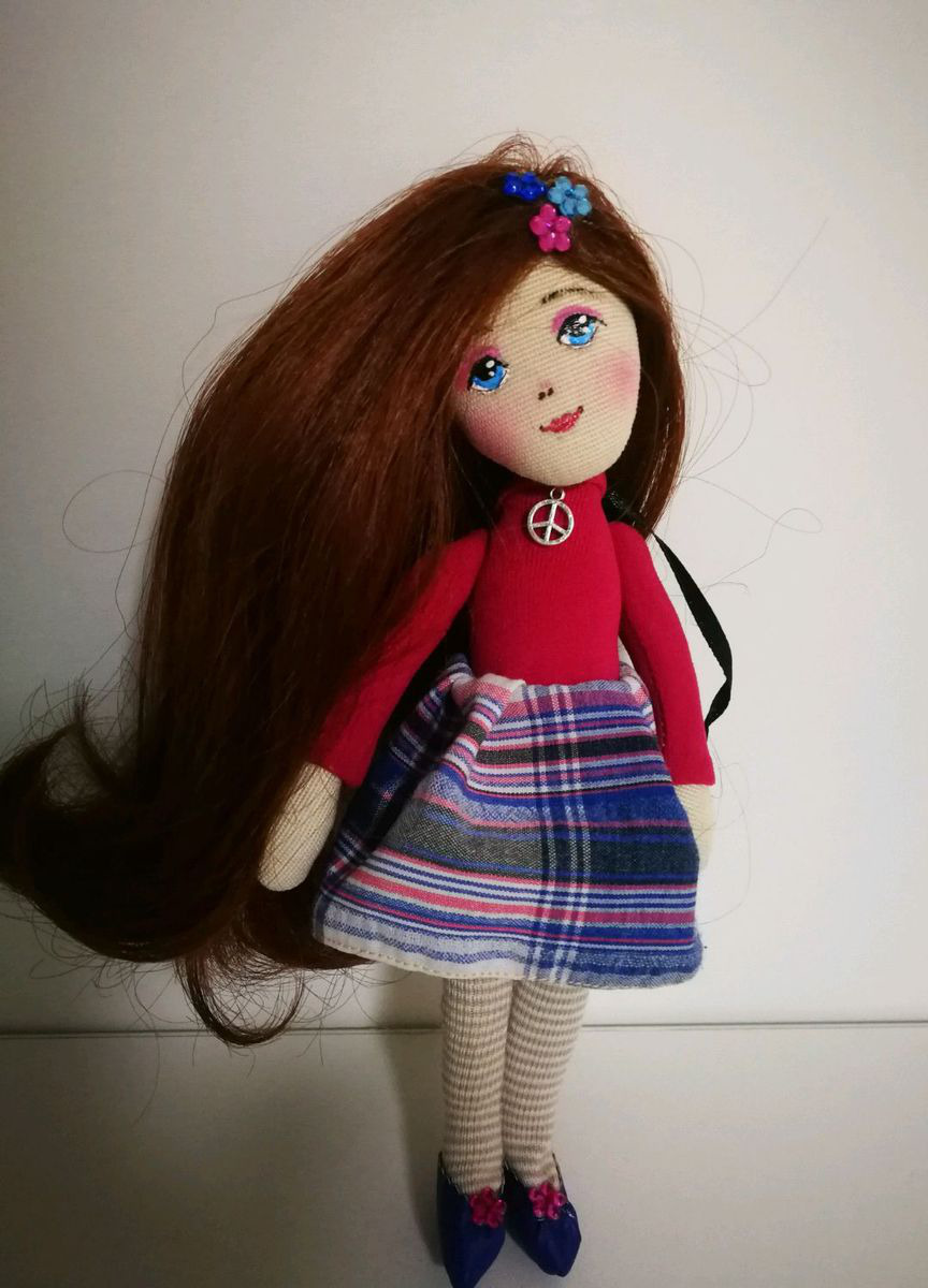 Куколка комплимент. Можно подвесить рядом с компьютером, носить в сумочке. Общаться и любоваться. Приятное дополнение к подарку.