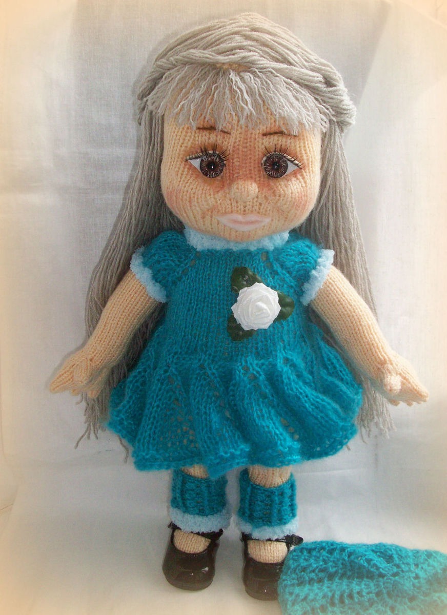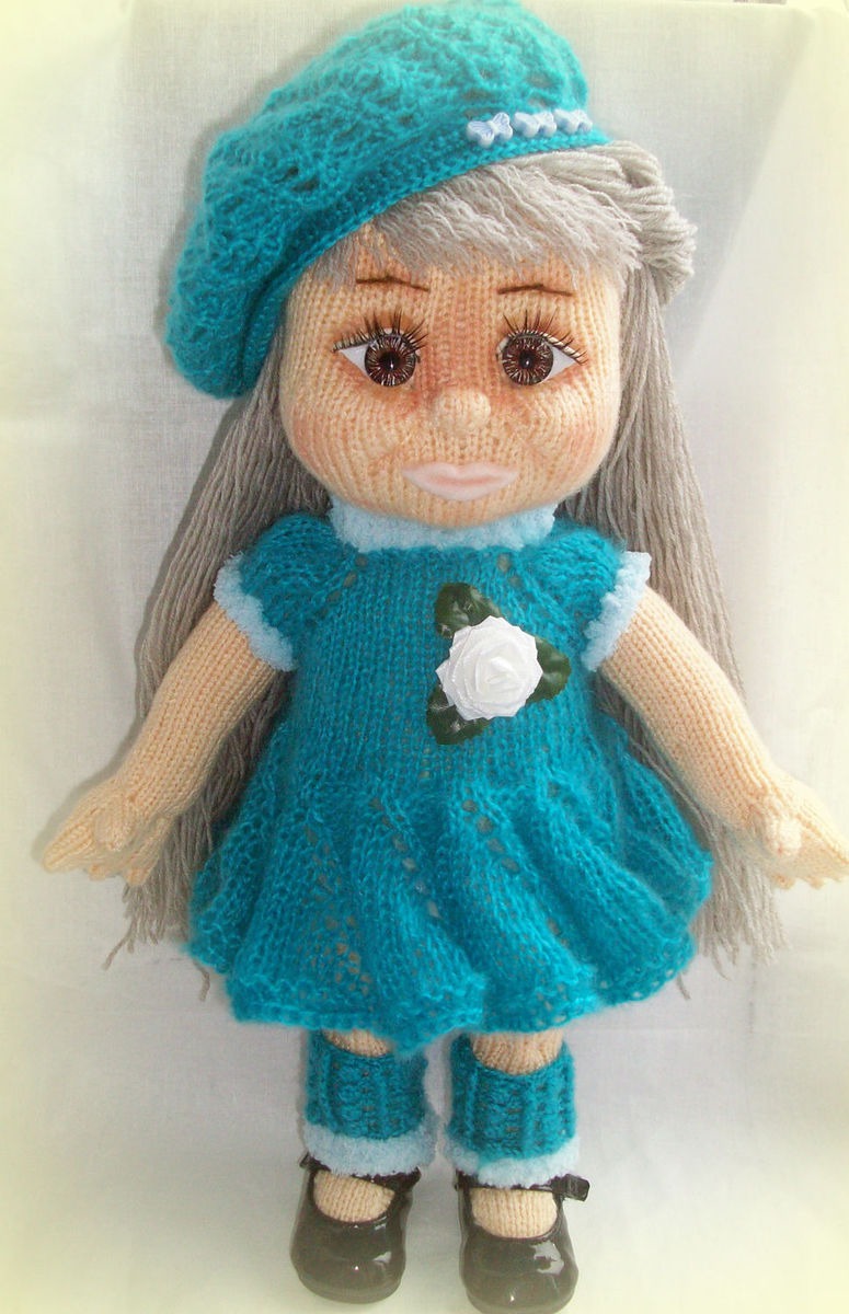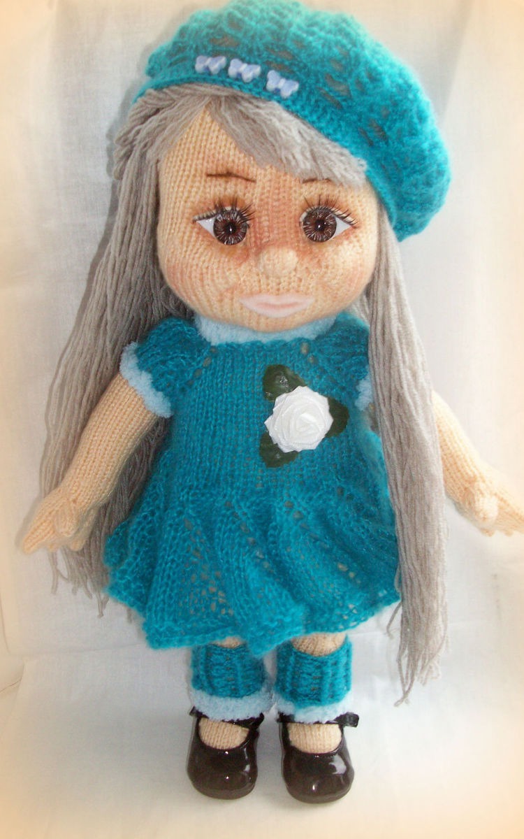 Предлагаю Вам приобрести малышку, кукла ростом 40 см.,стоит уверенно, самостоятельно, связана из акриловых ниточек, тонирована сухой художественной пастелью, глазки раскрашены вручную, вся одежда - берет, платье, туфельки, гетры снимаются, кукла будет будет прекрасным подарком вашим родным и близким