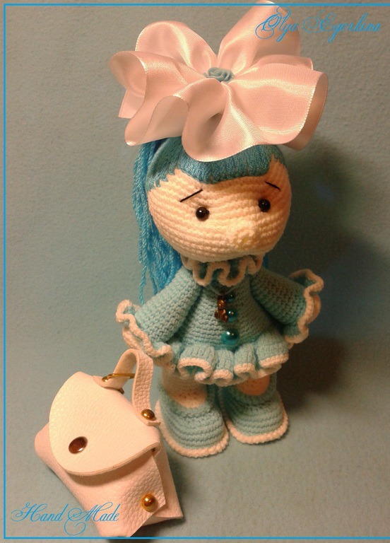 Мастер - класс "Девочка Мальвина". Содержит 22 страницы, подробное пошаговое описание, много фотографий процесса. Описание подходит для начинающих вязальщиц - требуются минимальные навыки вязания крючком.
