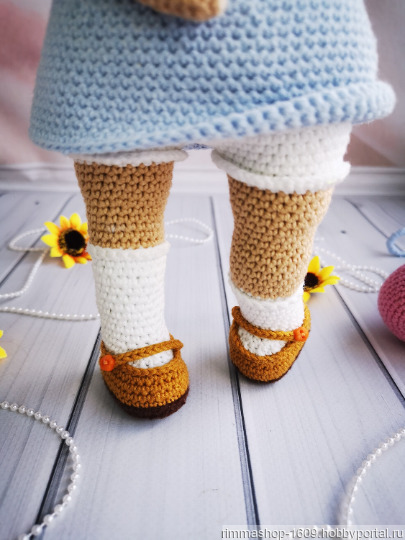 Вязаная кукла из джинсов (мягкая гипоаллергенная пряжа из смеси хлопка и акрила)
