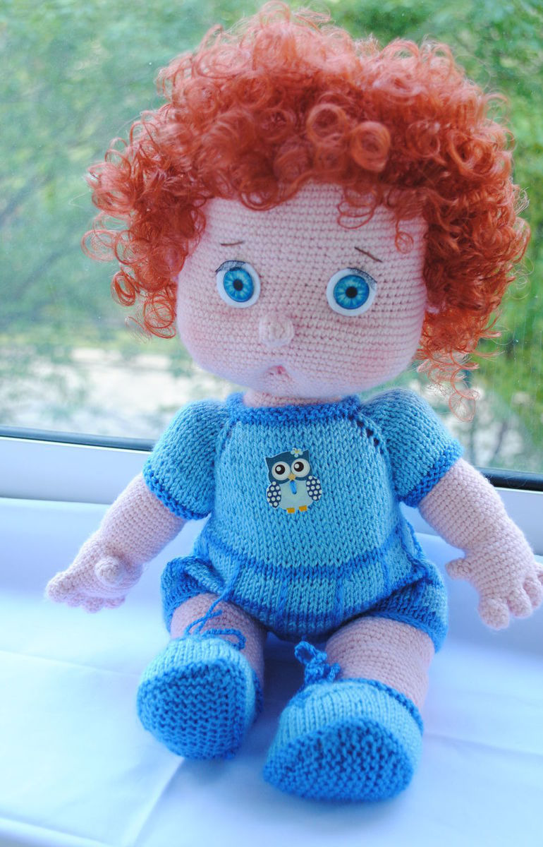 Пупс вязаный крючком . Ручки и ножки двигаются, самостоятельно сидит. Одежда снимается. Игрушка связана по МК Т.Садовской.