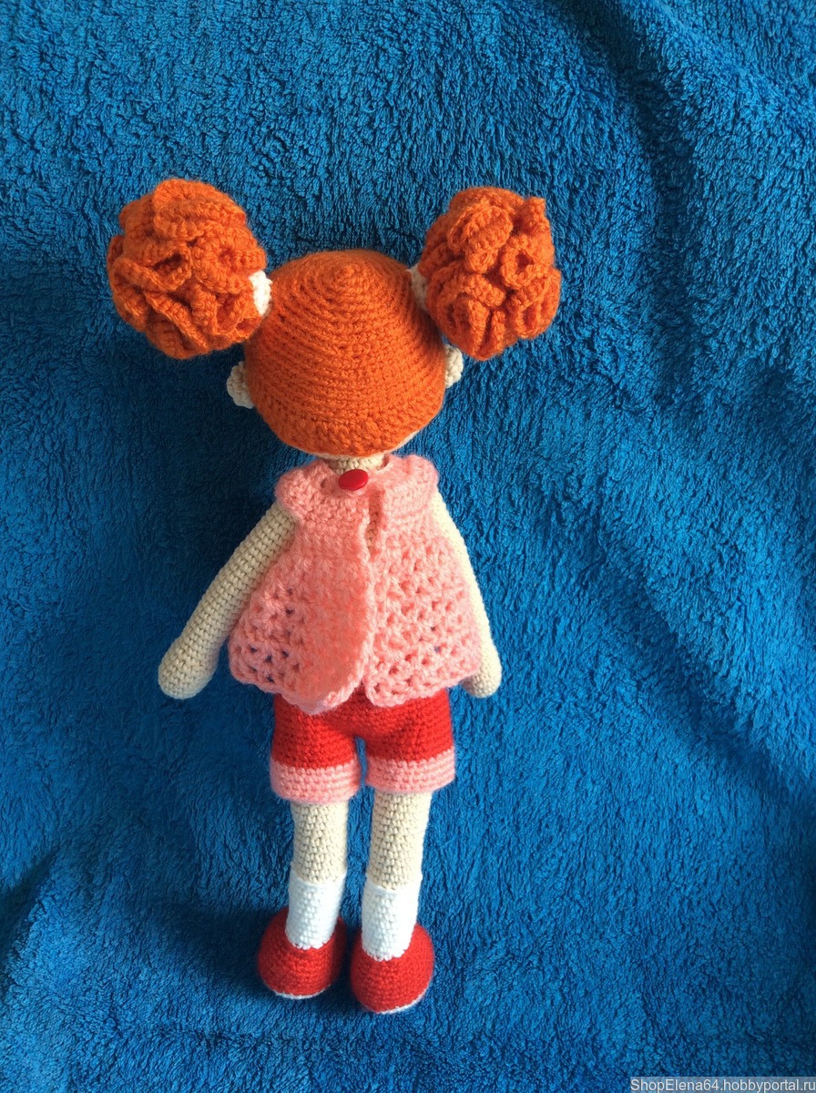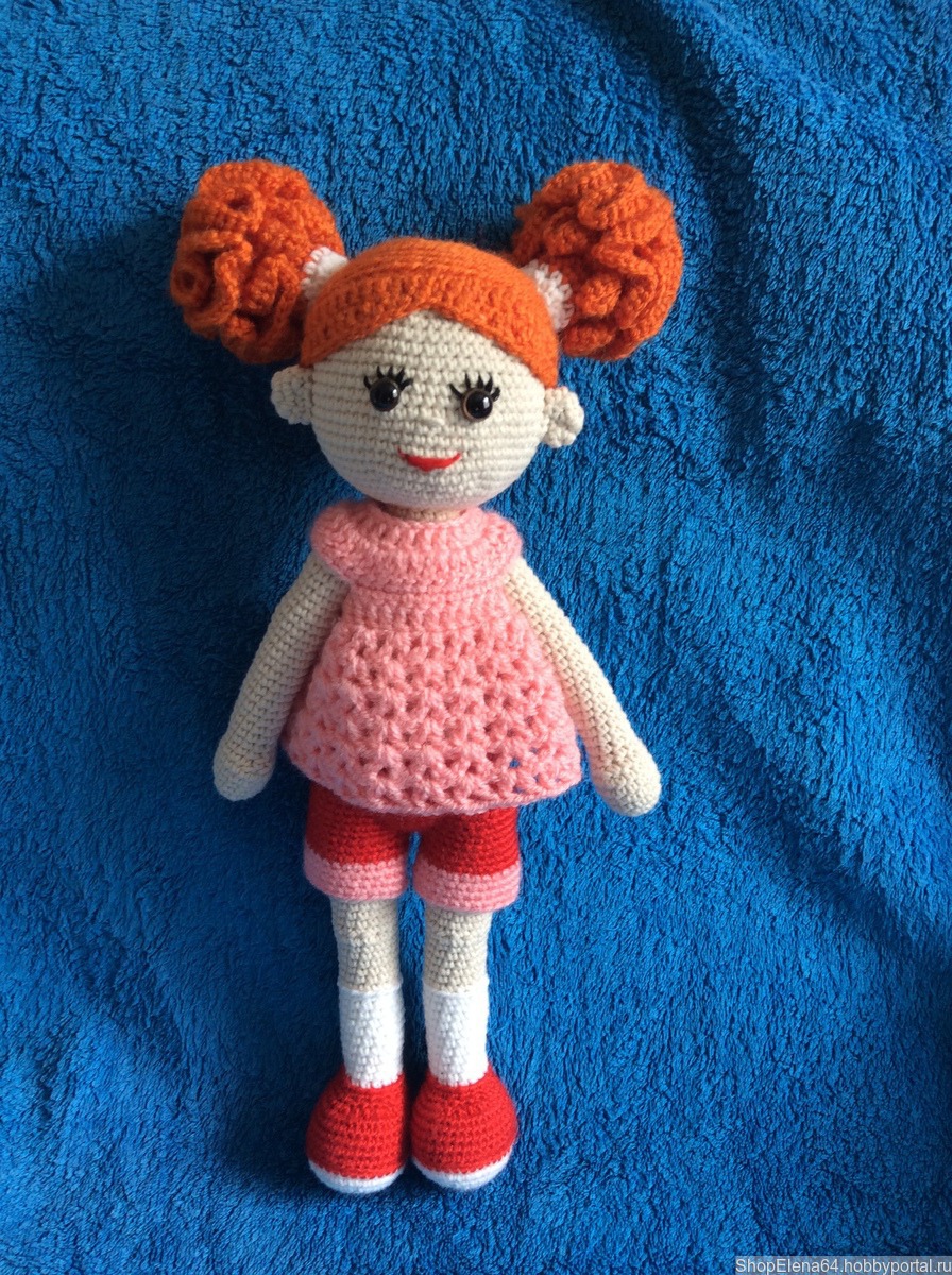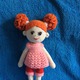 Здравствуйте! Вяжу с большим удовольствием игрушки для своих внуков и на заказ. Эта куколка связана крючком из детской пряжи. Ручки и ножки на шарнирном креплении. Кофточка снимается. Рост куколки - 33 см. Могу связать в другой цветовой гамме. И в другой одежде. Связана по МК Марины Чучкаловой