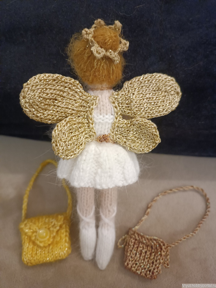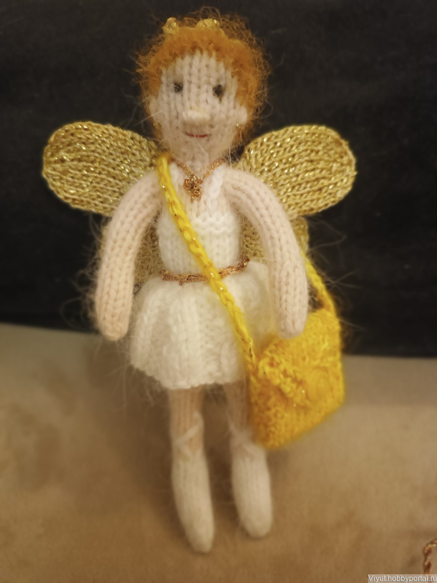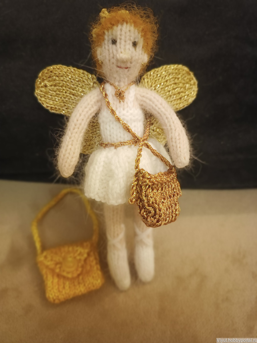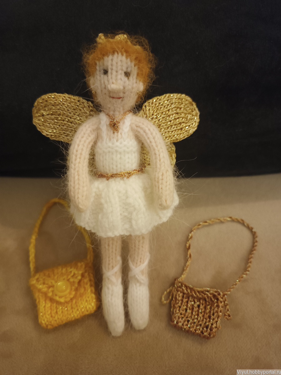 Вязаная фея балерина выполнена из мягкой пряжи пух норки. Может быть изготовлена в любом цвете, сумочка на выбор. Можно и без сумочки, а с волшебной палочкой:)