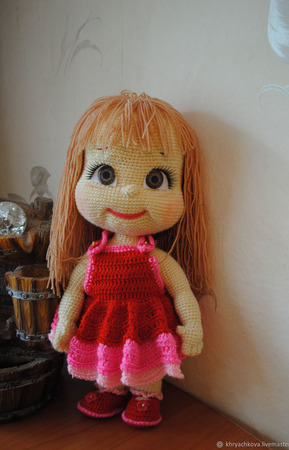 Кукла вязаная крючком. Одежда и обувь снимается. Стоит самостоятельно, ручки и ножки не двигаются. МК А.Садовской