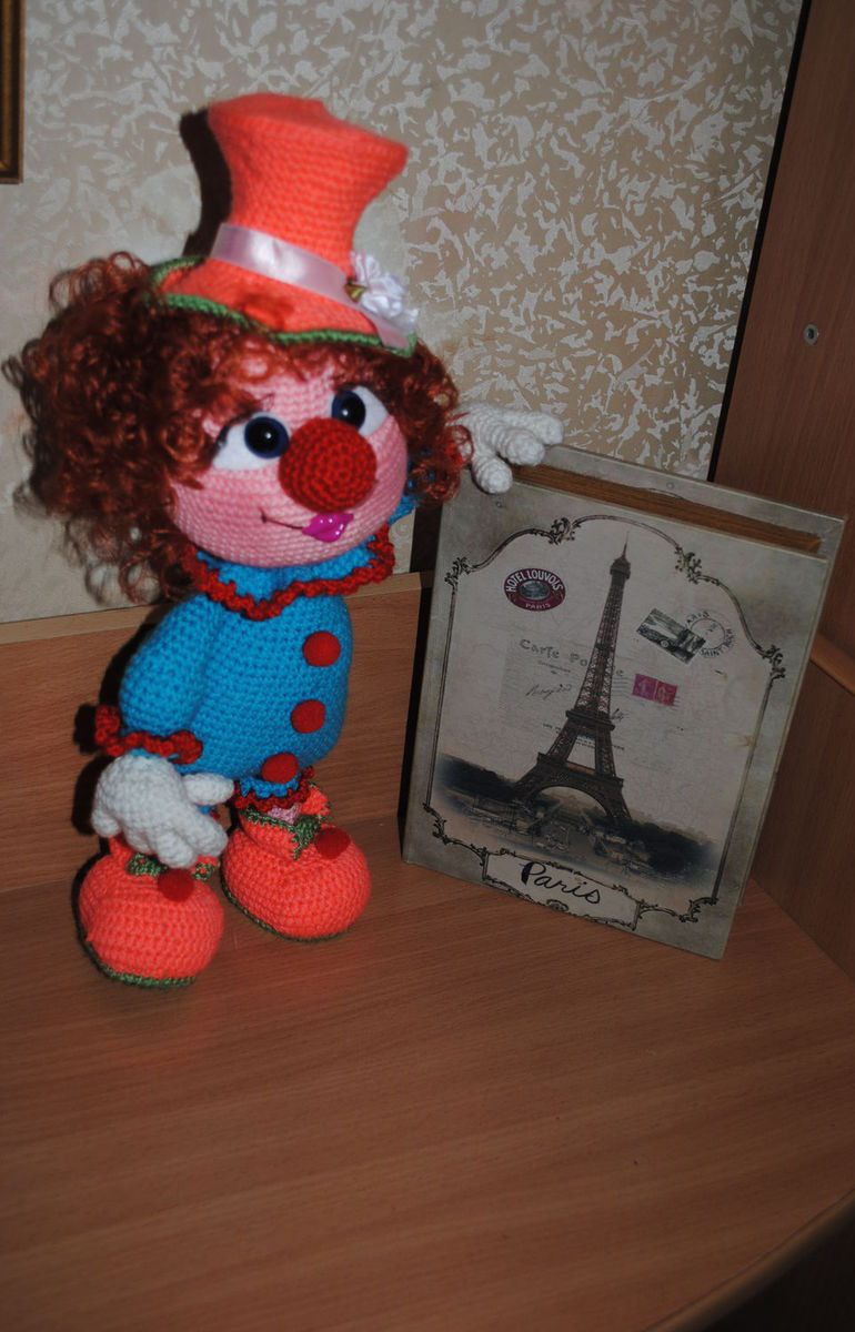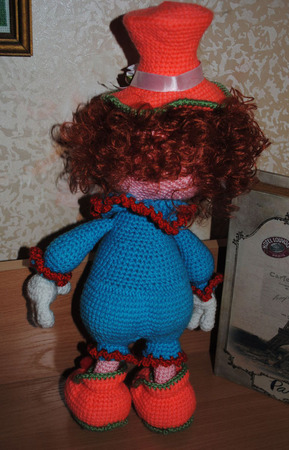 Куколка связана крючком. Одежда не снимается. Хороший подарок на любой случай. Подойдет для игры ребенку и как интерьерная.
