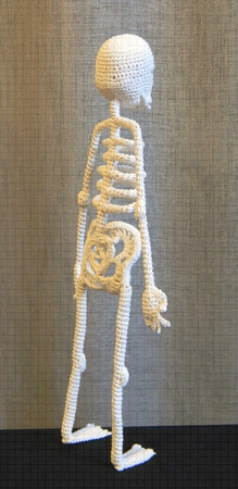 Необычная идея в интерьере – вязаная фигурка скелета.