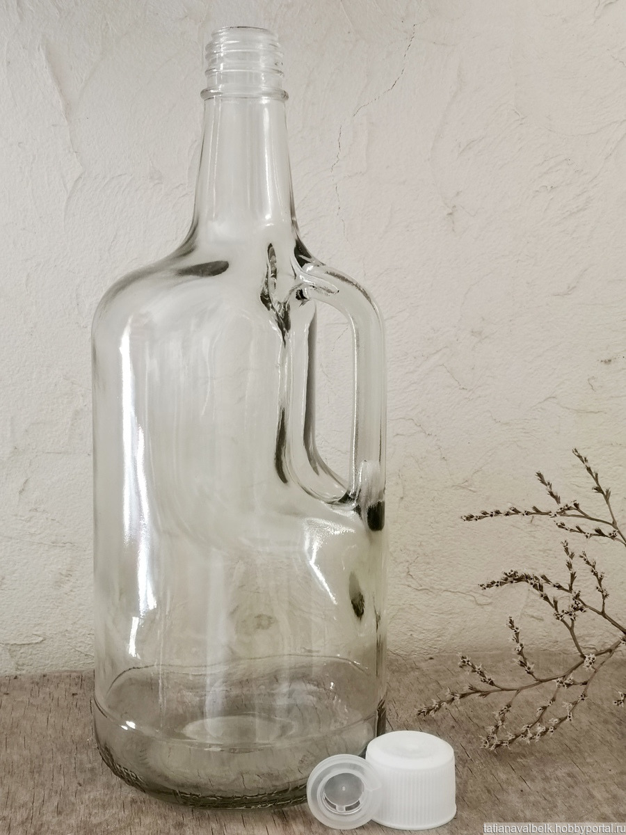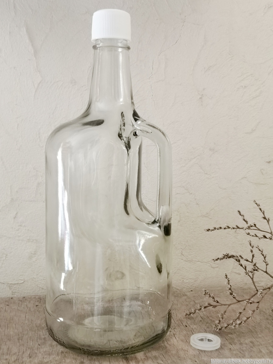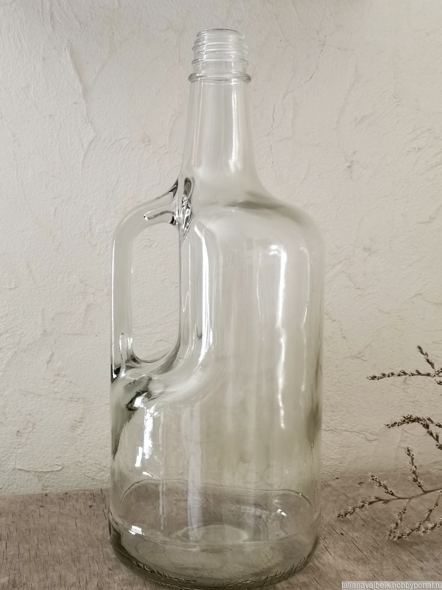 Бутылка из прозрачного стекла с ручкой, толстое стекло - тяжелая.