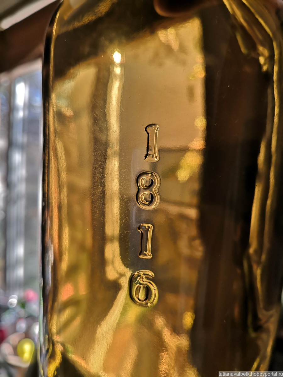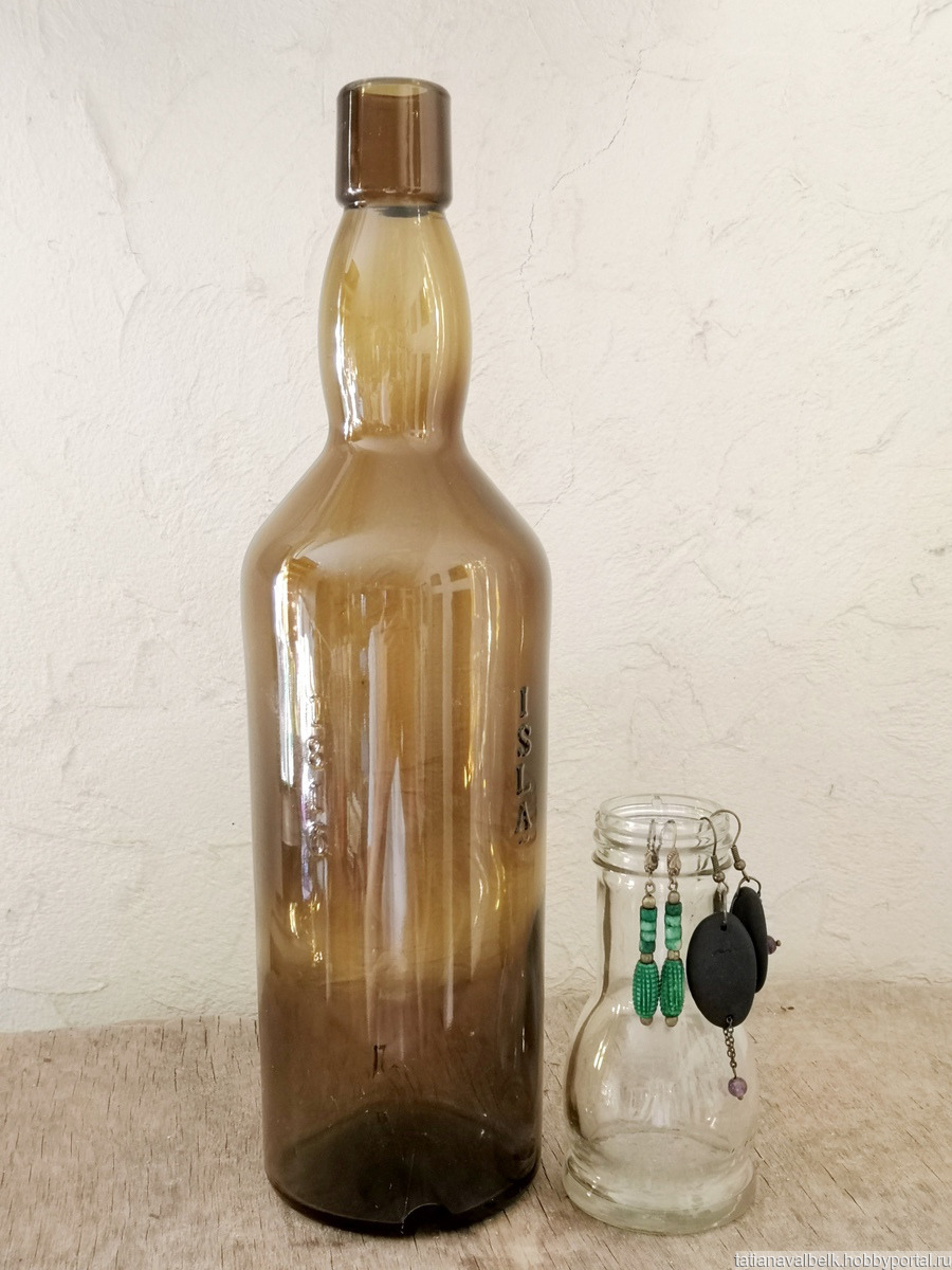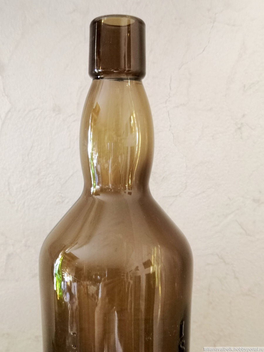Бутылка из стекла полупрозрачного коричнево-оливкового оттенка.