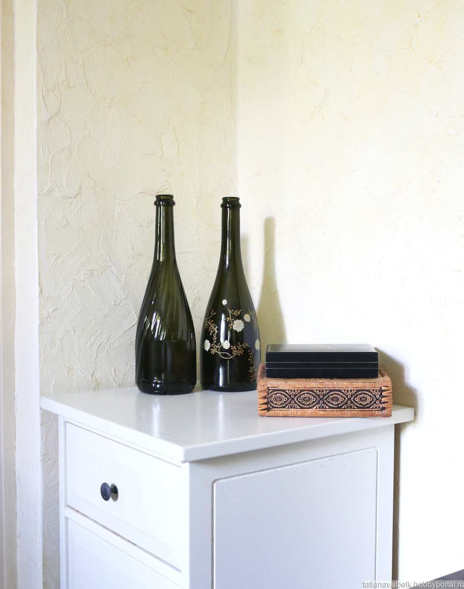 Можно использовать как вазы, отдельный предмет интерьера, не прибегая к декорированию, а можно украсить по своему вкусу - нанести рисунок витражными красками, декупаж, наклеиванием любого декора соответствующего задумке.
