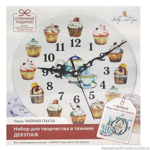Набор в технике декупаж Часы 'Чайная пауза' ручной работы на заказ