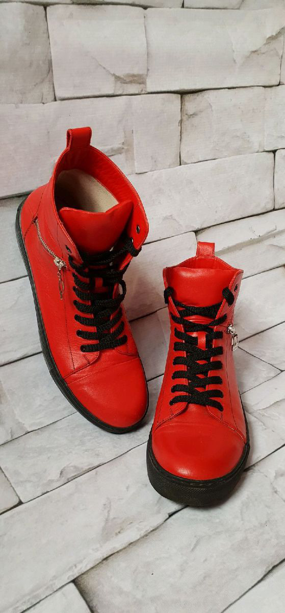 Кеды из натуральной кожи ручной работы размер 41, серебряные зимние на натуральном овечьем меху, из морозостойкой кожи, а красные весна осень, демисезон. Стелька внутри кожаная и меховая соответственно.