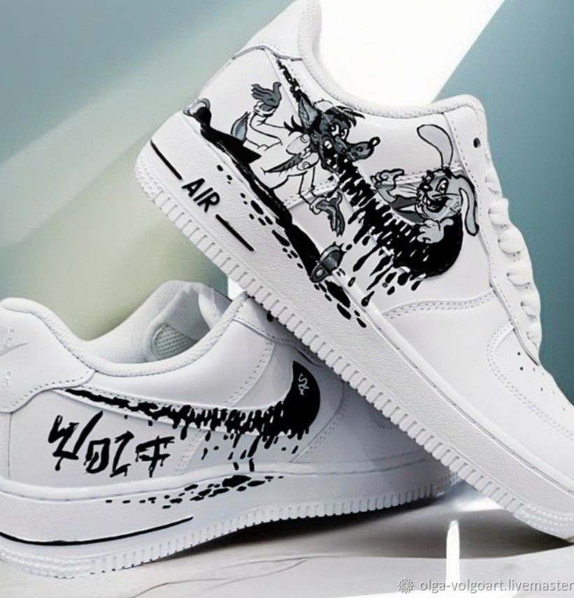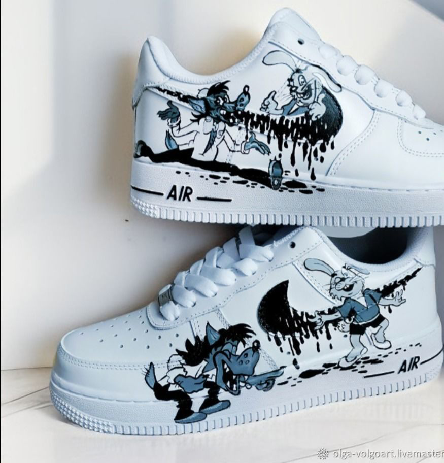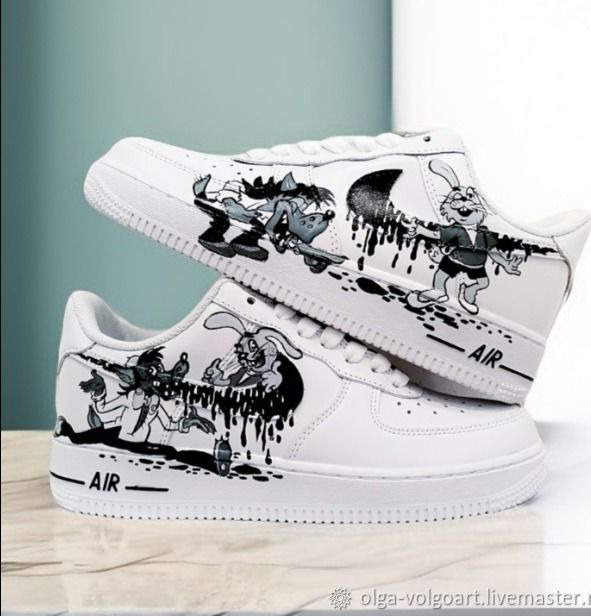 авторская работа, ручная работа, заяц, волк, мультик, дизайнерская одежда, уникальный подарок, ручная авторская работа, обувь, Мультяшные герои, авторский дизайн, унисекс, кеды, найк, кроссовки, ручная роспись, мультперсонаж, дизайнерская работа, кеды с росписью, кеды с рисунком, обувь с росписью, обувь с рисунком, кастом, кастомизация, кеды с рисунком купить, кастомные кроссовки, кроссовки с росписью